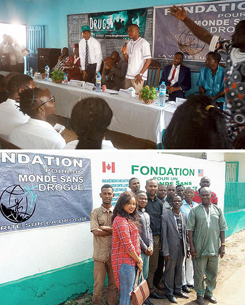 この問題に関して政府を目覚めさせる必要から、彼は大統領事務局で大臣と会い、 それから、薬物と犯罪組織との戦いのための特別業務の責任者である大統領秘書官と会いました。 DFW教材は的を射て、シラは、政府が支援できるように、財団の計画を書類にするように求められました。 ですから彼は自分のオフィスを設立し、「財団法人モンドサンズドローグ、ギニア」と壁に記しました。 彼は教授、弁護士、医師、実業家たちの献身的なチームを集めました。 彼らは次に提供を始めました。生徒たちが薬物のない人生の重要性を教えられているキング・ハッサン・モロッコ学校を含みます。 彼らはまた、街に出て行き一般の人々にも小冊子を配布し続けています。彼らの使命は薬物のない安全なギニアをつくることです。
