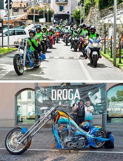 薬物のない世界イタリアは初めて「薬物にNO」のオートバイ・ラリーを開催し、薬物のない人生を促進するために、イタリア北部全域からのバイクマニアを集めました。 ラリーはミラノの北東、アルプスの街、ベルガモで開催されました。ロベレ、ベルガモのサルニコ、近隣のスルツァーノ、そしてブレシア県のイゼーオの町長が後援しました。