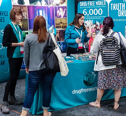 このデータは、若い海兵隊の教師でもある、ジョージア州アトランタPTAにとってはとても現実的なものでした。 既にDFWのオンライン教材を使っていた彼女はブースを訪れ、生徒に対する影響がどれほどあるかを語ってくれました。 彼女は生徒たちが教室で学んだことを思い出すことができるよう、「薬物のない世界」の小冊子を提供もしていました。 彼女は小冊子が、「事実に基づき、使うのが簡単」なところがとても気に入っていました。
